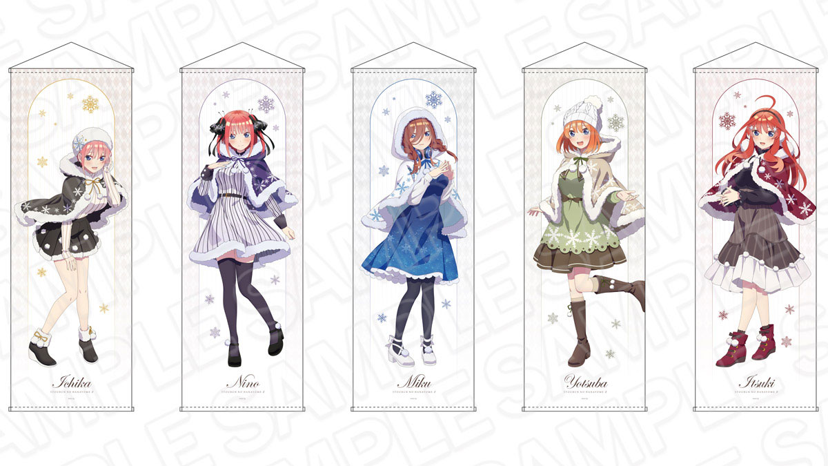 La colaboración entre The Chara Shop y el anime Go-Toubun no Hanayome comenzará a partir del 30 de diciembre hasta el 31 del mismo mes, y como se menciono anteriormente, estarán disponibles encantadores productos inspirados en los personajes Nino, Miku, Yotsuba, Itsuki y Ichika.
