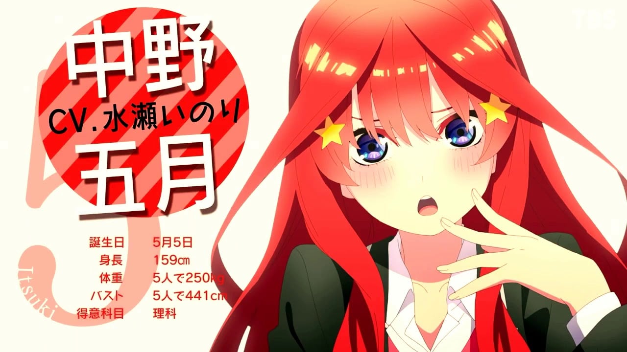 Por medio del sitio web oficial para la adaptaciรณn a anime del manga ยซGo-Toubun no Hanayomeยป se revelรณ un nuevo vรญdeo promocional de 30 segundos protagonizado por Itsuki Nakano.