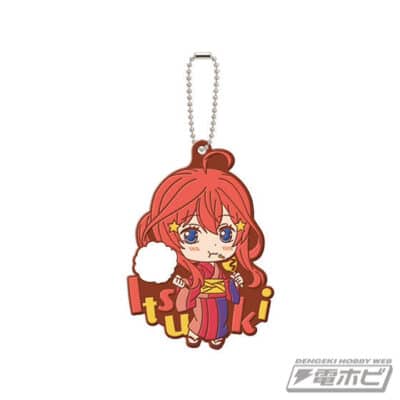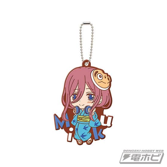 Los colgantes destacan por mostrarnos a las hermanas Nakano con un diseรฑo chibi y luciendo unos encantadores yukata, como si estuvieran celebrando un festival de verano. Ademรกs, cada colgante tiene una altura de 6 centรญmetros y un precio individual de 300 yenes.
