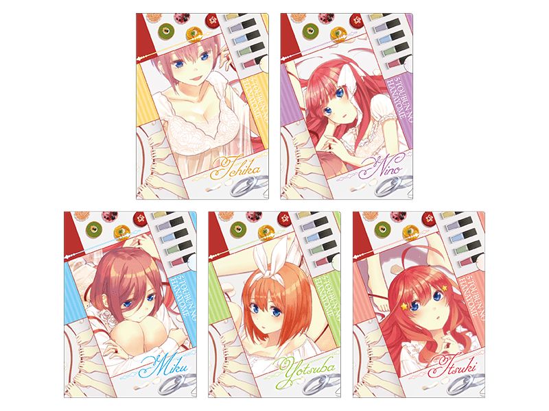 Recientemente, la franquicia Go-Toubun no Hanayome anunció una colaboración con la cadena de tiendas Lawson, Loppi, HMV & BOOKS para lanzar una colección de carpetas con ilustraciones de las quintillizas.