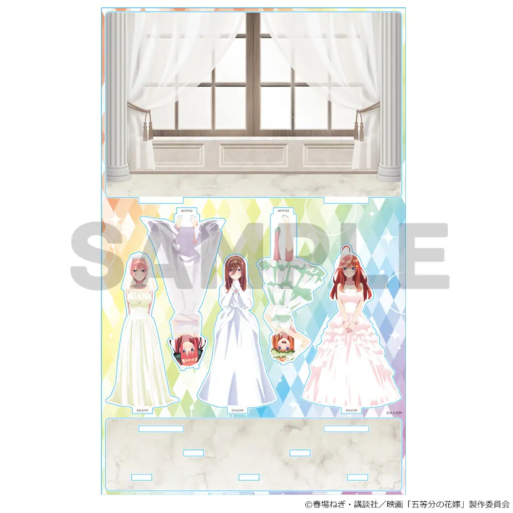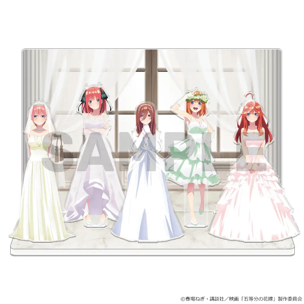 Cada uno de los acrílicos tienen un tamaño aproximado de 24 centímetros de alto con 15 centímetros y un precio individual de 4,400 yenes (impuestos incluidos). Pudiéndose apreciar a las quintillizas luciendo hermosos vestidos chinos, vestidos de lolita y vestidos de novias.