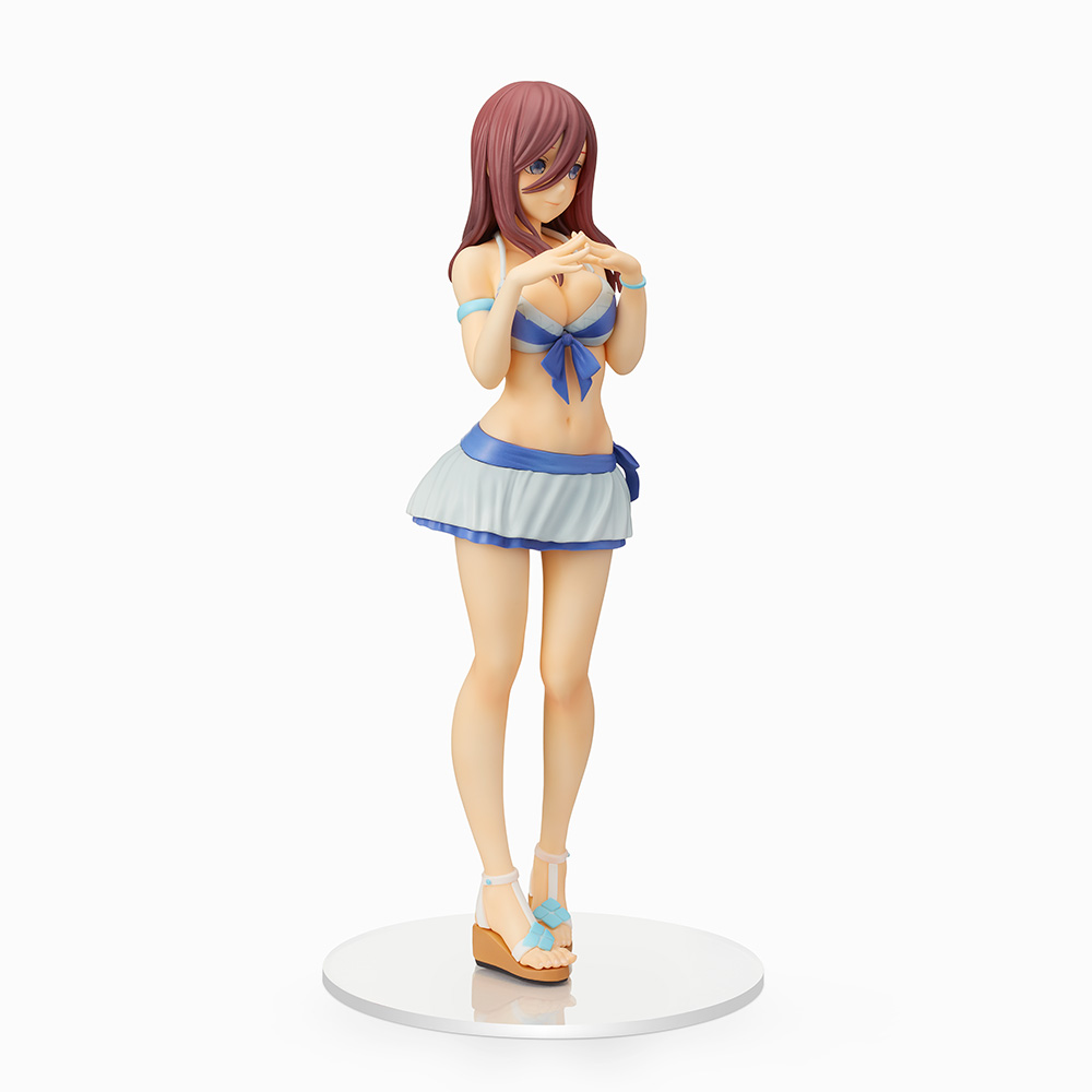 En esta figura podemos apreciar a Miku Nakano portando un sensual y atractivo bikini, con sus manos cruzados y flexionando levemente su pierna izquierda. Los detalles en las zapatillas como son el adorno color celeste que hace juego con su bikini, el cual es del color característico del personaje.