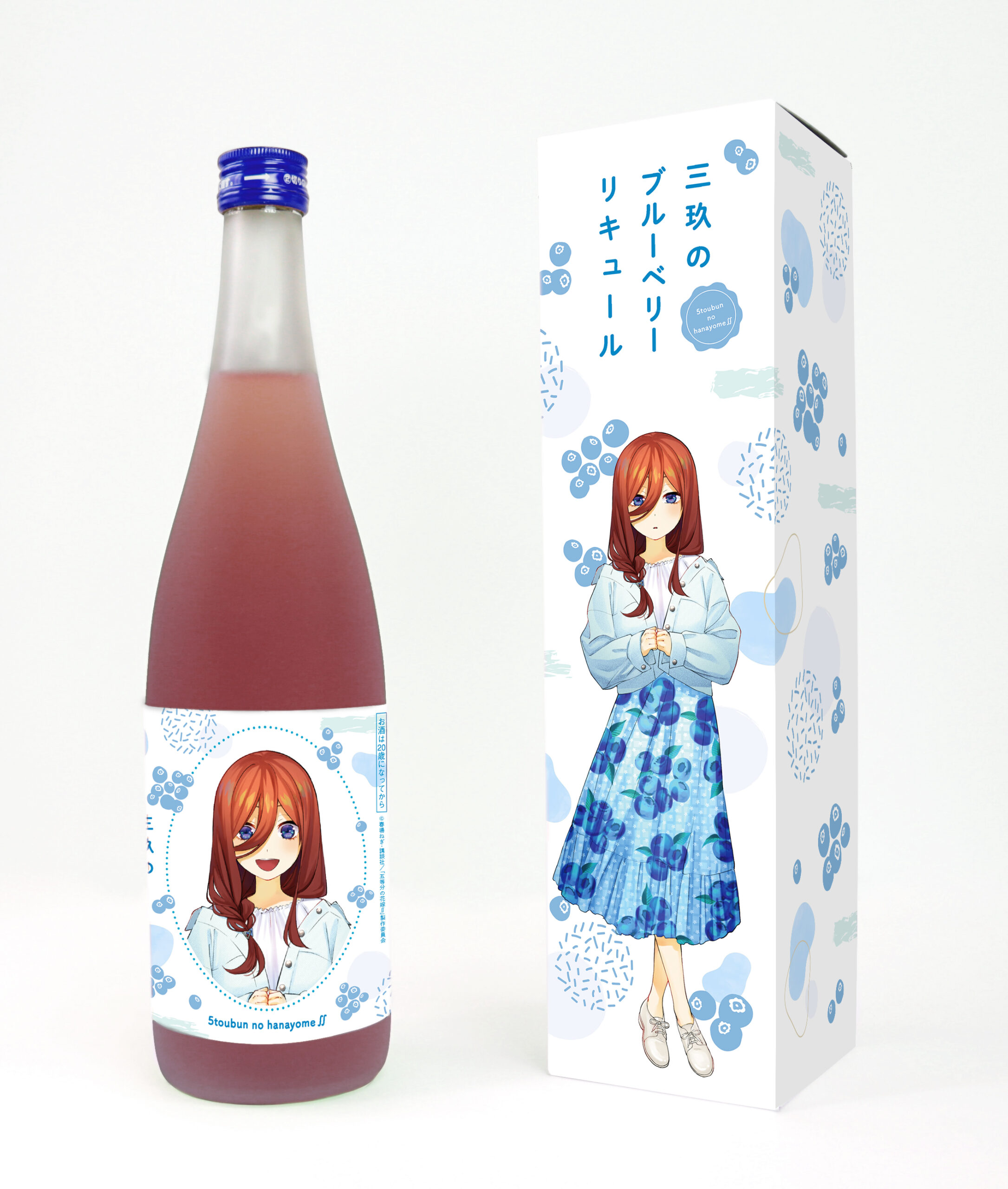 A través del Twitter oficial de Pony Canyon Planning se anunció el lanzamiento de una botella de licor de arándanos (mora azul) basado en Miku Nakano personaje de la franquicia Go-toubun no Hanayome (The Quintessential Quintuplets). El producto estará disponible el próximo 28 de julio en Japón.