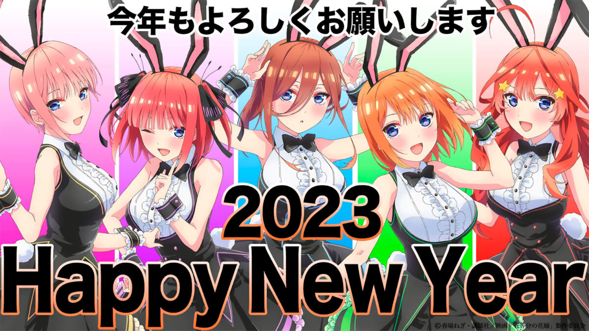Como algunos sabrán, en Japón ya han pasado más de las 00:00 AM, lo cual marca la llegada de un nuevo año. Es por eso que para celebrar el comienzo del año 2023, en los medios oficiales del anime «Go-Toubun no Hanayome» (The Quintessential Quintuplets) han publicado una ilustración especial protagonizada por los personajes Ichika Nakano, Nino Nakano, Miku Nakano, Yotsuba Nakano e Itsuki Nakano, quienes lucirán un atuendo más que especial para la ocasión.