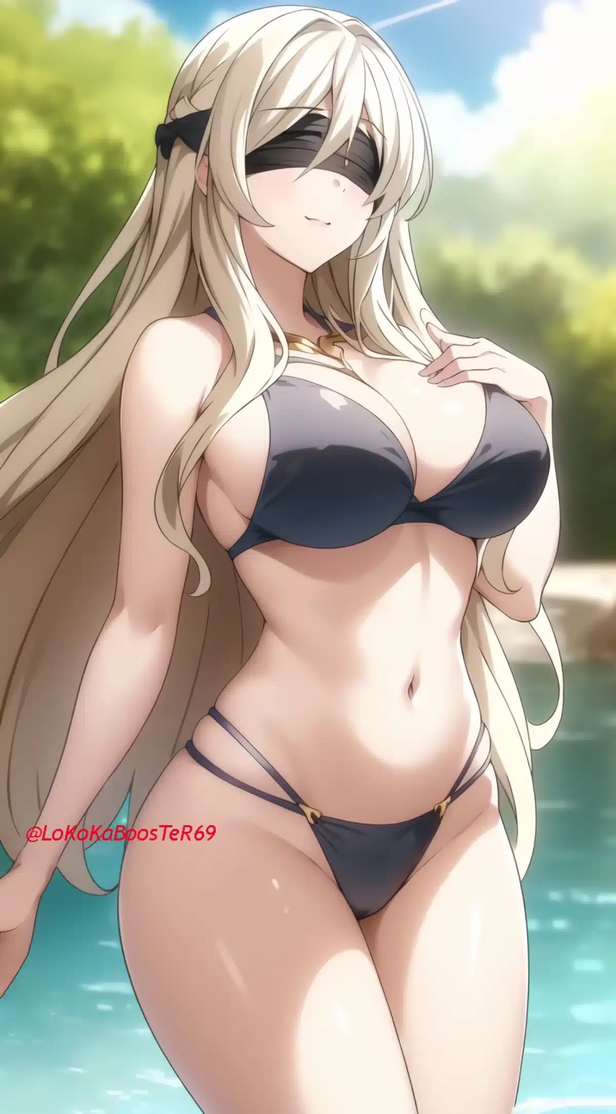 En una extraordinaria representaciรณn de la Doncella de la Espada, el usuario de la plataforma Twitter/X, conocido como Anime Everyday (@LoKoKaBoosTeR69), nos presenta una versiรณn impresionante de este icรณnico personaje. En esta ilustraciรณn, la Doncella de la Espada se transforma en una mujer aรบn mรกs cautivadora al ser retratada con un elegante traje de baรฑo de tonalidades negras, que resalta de manera sublime sus imponentes atributos fรญsicos.