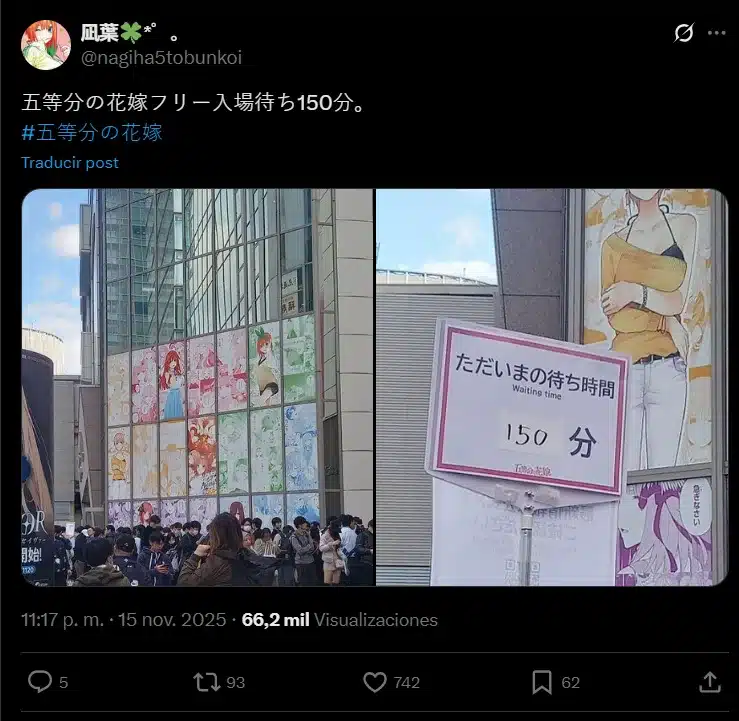 En resumen, si alguien todavía dudaba de la fuerza que The Quintessential Quintuplets mantiene en 2025, la escena en Akihabara lo deja claro con una fila de más de dos horas y media que sigue siendo suficiente para reunir a cientos de fans decididos a conseguir cualquier artículo relacionado con su quintilliza favorita. Esa fidelidad hacia Ichika, Nino, Miku, Yotsuba e Itsuki no solo persiste, sino que parece haberse vuelto parte del ADN de la comunidad.
