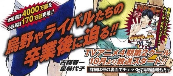 Se acaba de revelar que el manga Haikyuu!! ya tiene tiene más de 40 millones de copias en circulación en Japón y sus novelas ya superan la cifra de más de 1.7 millones de copias.