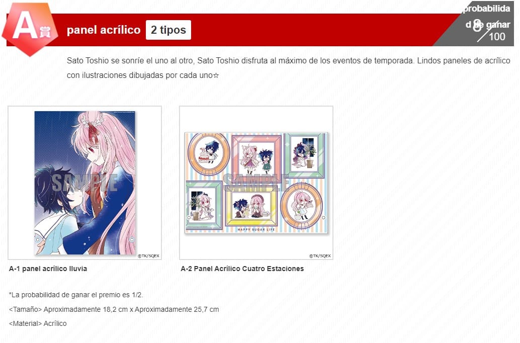 El boleto para esta lotería tendrá un costo de 770 yenes (sin incluir gastos de envío) y estará disponible para su venta en el periodo del 21 de junio hasta el 26 de julio, por lo que los fanáticos de esta serie pueden ya adquirir su boleto para esta lotería especial y recibir productos únicos de Happy Sugar Life.