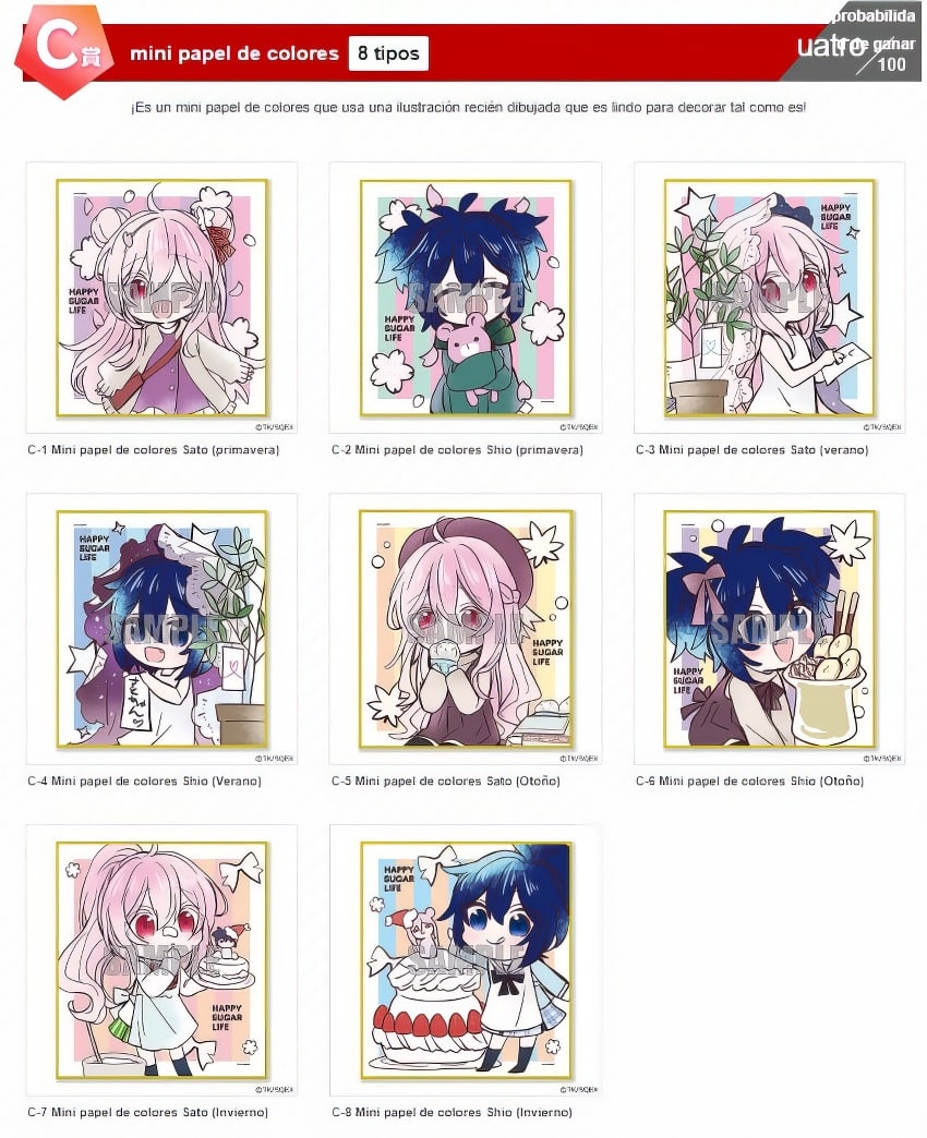 Los premios disponibles para la lotería de Happy Sugar Life serán los siguientes: