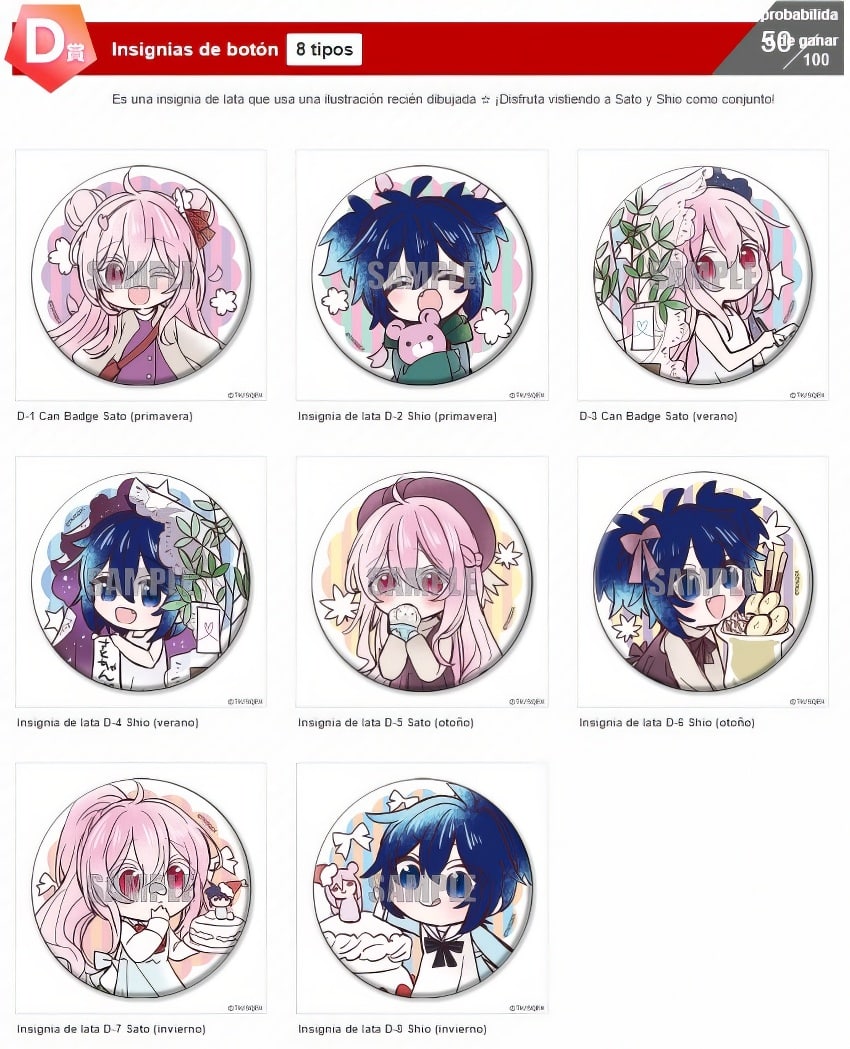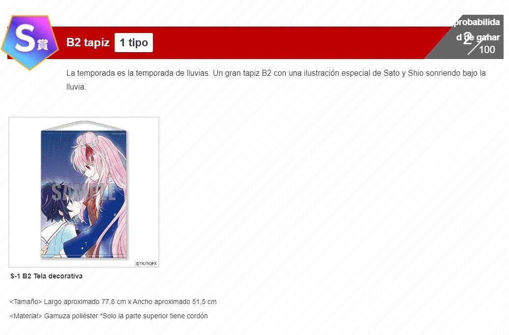 Como en la mayoría de las loterías los premios van desde el rango S hasta el rango D, siendo el rango alto el más atractivo que mucha gente querrá tener y el rango D el más bajo, pero aun así son productos que valen mucho la pena, todos los productos contarán con ilustraciones especiales con motivo de esta lotería especial.