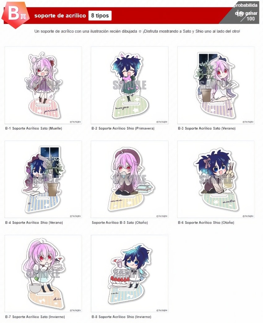 - Rango B: Figura acrílica con soporte de minipersonaje (8 modelos)