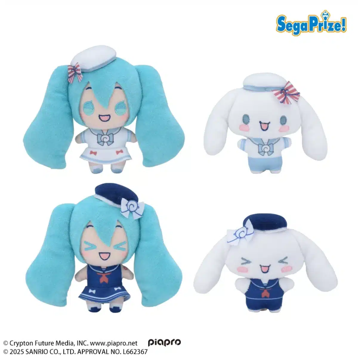 Los fanáticos de Cinnamoroll, como así también los de Hatsune Miku reciben buenas noticias. Y es que para seguir sumando nuevas colaboraciones a su repertorio, se ha anunciado un nuevo set de productos. Estos son cuatro nuevos peluches que tienen como temática poseer atuendos de marineros. Además, también se confirmaron que se podrán obtener varios llaveros especiales que siguen con la temática mencionada y que todo fan querrá obtener.