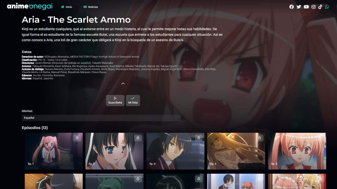 Entre sus animes que tiene Anime Onegai en su hermoso catálogo tiene a Aria – The Scarlet Ammo un título del cual les contamos sobre el hace un momento y que cuenta con las increíbles voces de Enzo Fortuny como Kinji, Susana Moreno como Aria aunque ahí tengo un detalle y es que con ella dándole voz a Aria pareciera que estoy escuchando a Iris de Pokémon, pero es cosa mía jaja, también esta Elizabeth Infante como Riko y muchos más actores de doblaje latino que dieron su mayor esfuerzo para traer esta serie a Latinoamérica.