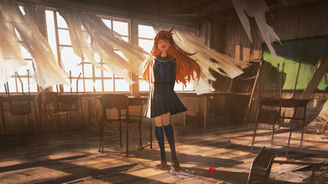 El trรกiler cambia a lo que parece ser una escuela en la vida real, donde Sora sigue persiguiendo al protagonista antes de terminar en un extraรฑo colgante. El proyecto anunciado presentarรก probablemente dos escuelas de dos mundos diferentes: una escuela virtual de estilo antiguo hecha principalmente de madera y una escuela mรกs moderna ambientada en el mundo real.
