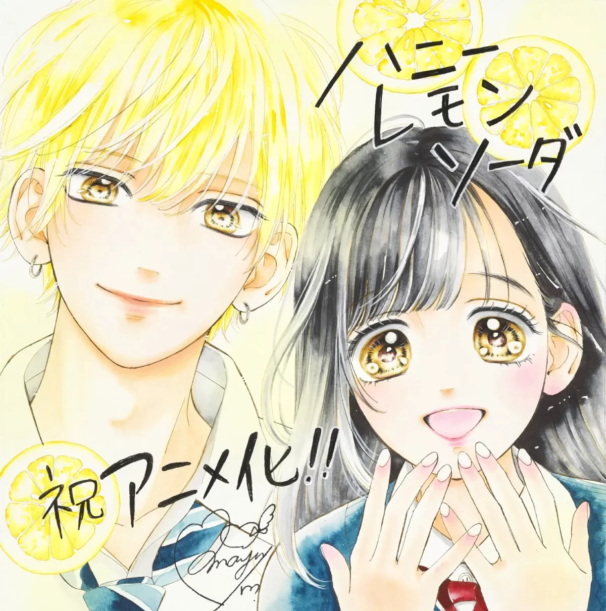 Para celebrar esta increíble noticia junto a los fanáticos de su obra, la autora del manga Honey Lemon Soda, Mayu Murata, ha preparado una ilustración especial y agradeció a todos por el apoyo inmenso que su obra está recibiendo. Hay que mencionar que por el momento no se ha dado a conocer una posible fecha de estreno para el anime televisivo «Honey Lemon Soda«.