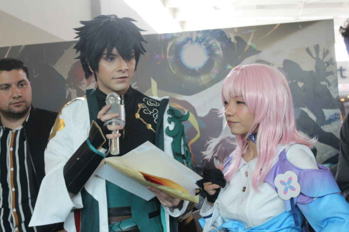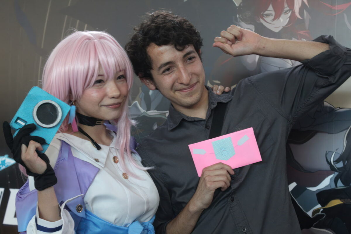 En Forum Buenavista, CDMX, desde temprano comenzó a notarse movimiento en el escenario donde los cosplayers Gentlemanbmo y Faki_chan, quienes estaban caracterizados como los personajes de Dan Heng y March 7th, respectivamente, se encargaban de animar el evento y tomarse fotos con los asistentes. Mientras tanto, algunos otros se formaban para participar en las dinámicas que estaban preparadas en el stand.