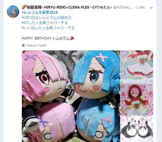 Por medio del hashtag #レムラム生誕祭2019 usuarios de todas partes del mundo compartieron todo tipo de imágenes, mercancía y mensajes de celebración por el cumpleaños de Rem y Ram.