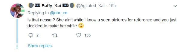 Como muchos se lo pueden imaginar, las criticas se centraron en el cambio del color de piel del personaje Nessa, en el cual tuvo un «blanqueamiento» y las personas vieron esto como una falta de respeto. Veamos alguna de ellas:
