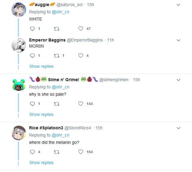 El primer comentario hace mención nos hace recordar algo que paso en el pasado con los ilustradores japoneses y es que ellos empezaron a hacer versiones de personajes con piel morena, cambiando su tonalidad de piel por una mas «blanca», resultando en una lluvia de criticas hacia estos ilustradores. Mientras que el segundo comentario, amenaza al ilustrador comentando de que su cuenta desaparecerá pronto.