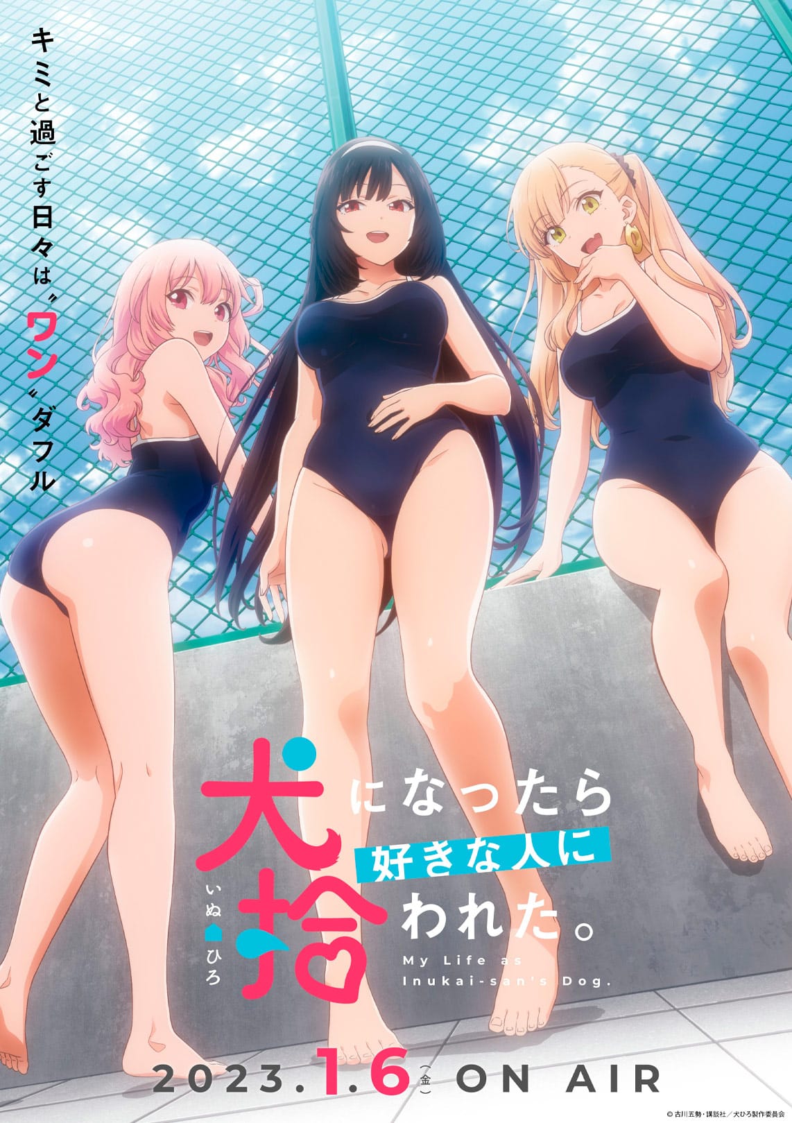 Pero eso no es todo, ya que en el sitio web oficial del anime Inu ni Nattara Suki na Hito ni Hirowareta se reveló una nueva imagen visual protagonizada por los personajes Karen Inukai, Mike Nekotani y Usagi Tsukishiro, quienes lucirán un atractivo traje de baño escolar.