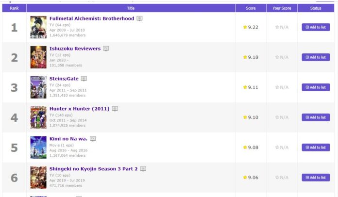 Desde hace unas horas, Ishuzoku Reviewers se ha posicionado como el segundo anime mejor valorado, superando a obras como Shingeki no Kyojin, Steins;Gate,ย Kimi no Na wa e incluso Kimetsu no Yaiba. Aunque Fullmetal Alchemist: Brotherhood sigue siendo el rey, pero esto podrรญa cambiar en las prรณximas horas.