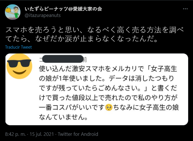 “Decidí vender mi celular en Mercari : ‘Mi hija, una colegiala, lo usó por un año, creo que borré los datos, pero lamento si todavía tengo algo ahí” escribí en la descripción.»