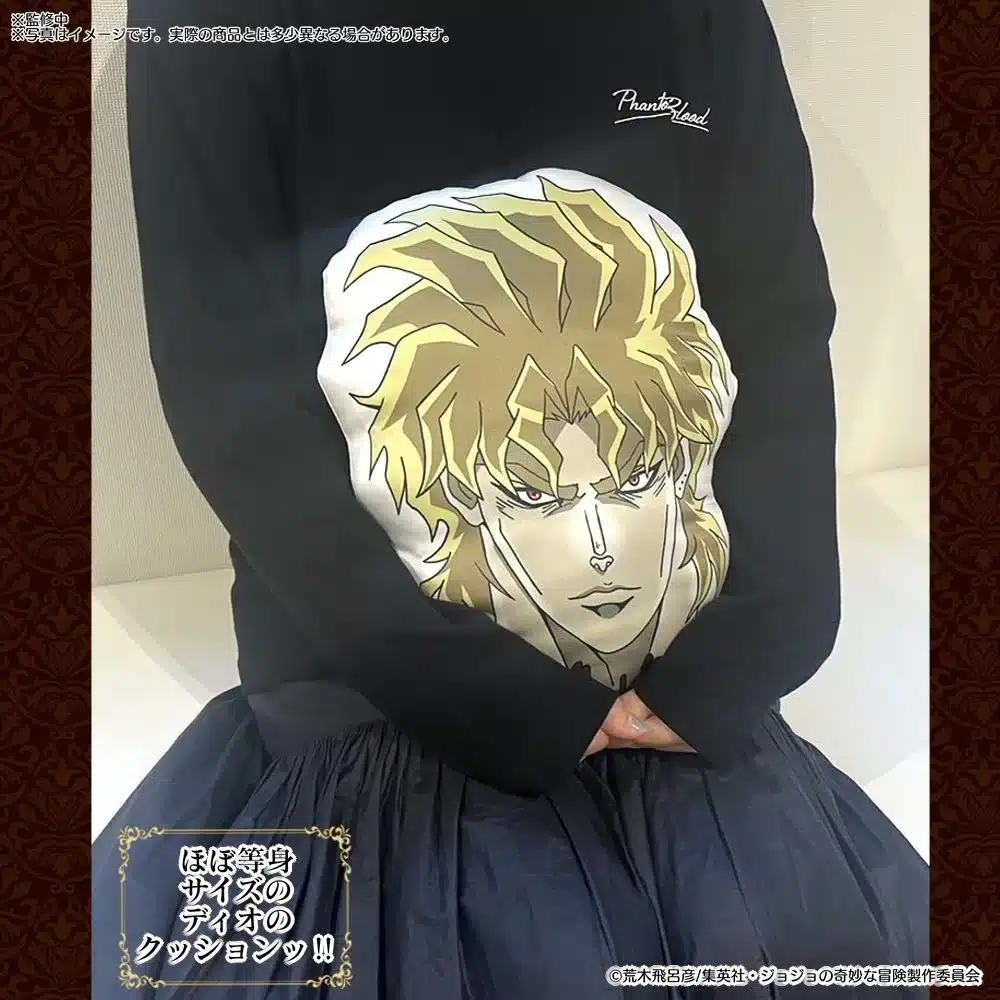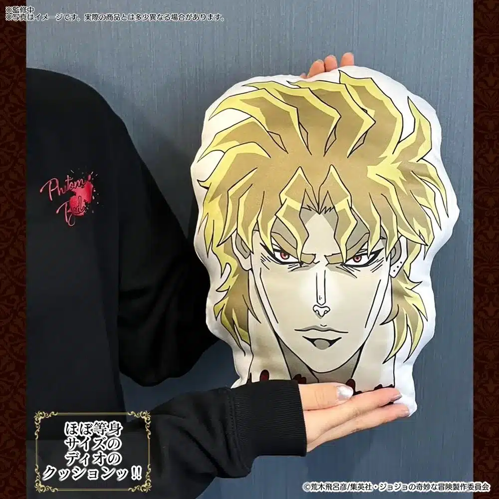 En esta ocasión, a través de la cuenta oficial de X de la compañía Medicos Entertainment, reveló un producto muy particular que estará a la venta durante la edición Jump Festa 24. Se trata de un cojín decorativo inspirado en la cabeza de DIO, tal y como se mostró en su última aparición en el arco de Phantom Blood. La cual se apegará a dicho evento, representando la cabeza decapitada, por lo que la imagen mostrará un poco de sangre al rededor del cuello.
