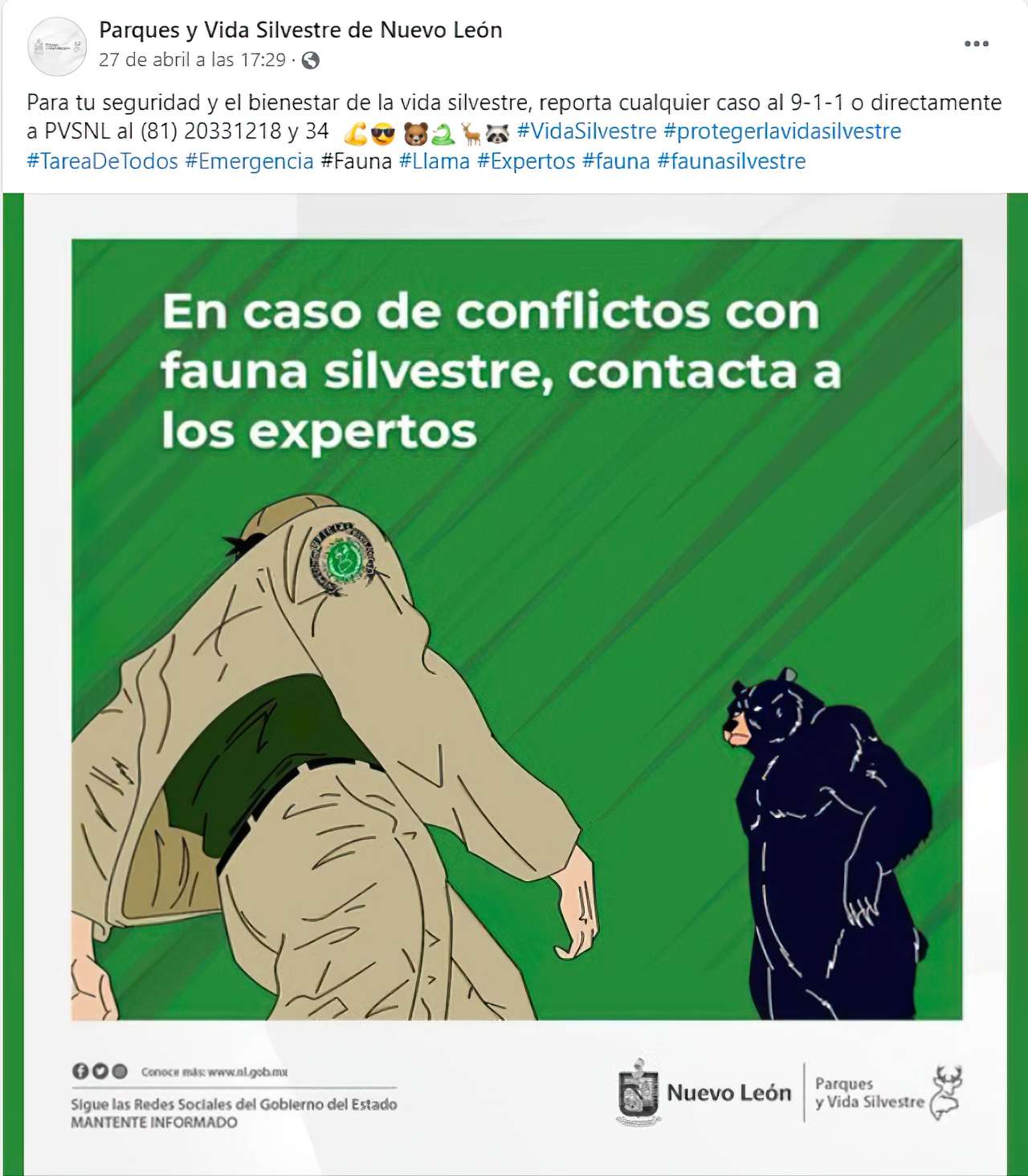 La publicación busca darle prioridad y es un aviso a la población de Nuevo León de a quien deben de llamar en un caso así. Sin embargo, el tema humorístico y la relación que tendrían en la vida real son de admirar, pues nos ponen al equipo de seguridad a punto de pelear con el oso. A continuación dejamos la escena de donde se inspiraron para la publicación.