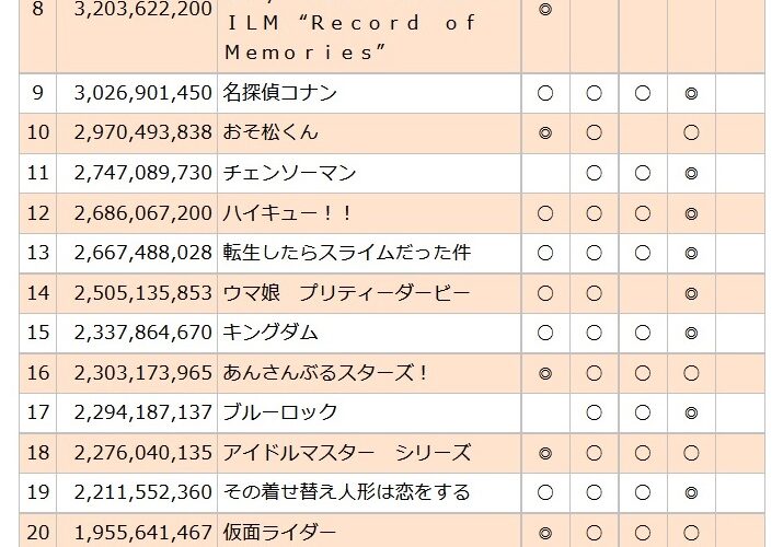 - 18.° The Idolmaster – 2,276,040,135 ¥