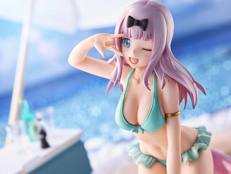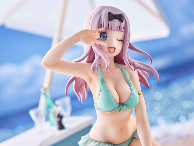 La figura recrea a la perfección la esbelta figura y la belleza natural de Chika, resaltando su hermosa sonrisa y su encantador traje de baño de color verde.