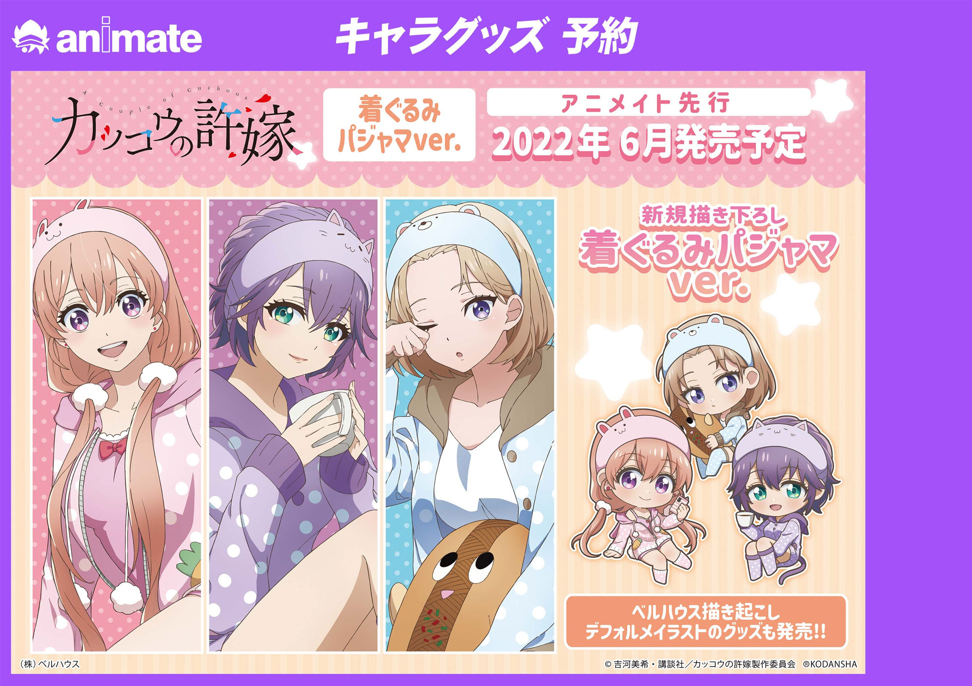 En el sitio web oficial de la tienda online «animate» se presentó una nueva colaboración con el anime Kakkou no Iinazuke (A Couple of Cuckoos) que consistirá en la producción de diferentes productos inspirados en los personajes Erika Amano, Hiro Segawa y Sachi Umino. Adicionalmente, se reveló una imagen promocional para la colaboración.