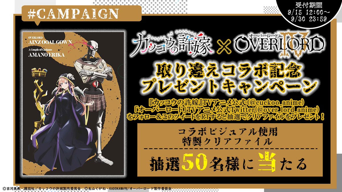 En el sitio web oficial para la adaptación al anime del manga Kakkou no Iinazuke, se anunció que está comenzando una divertida colaboración con la franquicia «Overlord«, en donde se ha publicado una «Hilarante» imagen visual protagonizada por Erika Amano y Ainz.