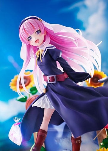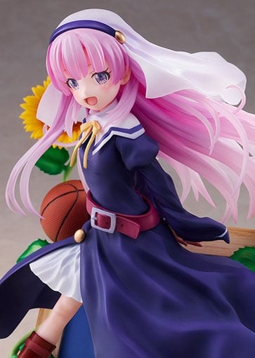 La figura nos muestra a la personaje Hina vistiendo su clasico vestido de monja que vemos en el anime, con un ambiente de verano, la cual resalta el detalle del producto, convirtiendolo en un producto de calidad que puede encantar a aquella persona que lo observa.