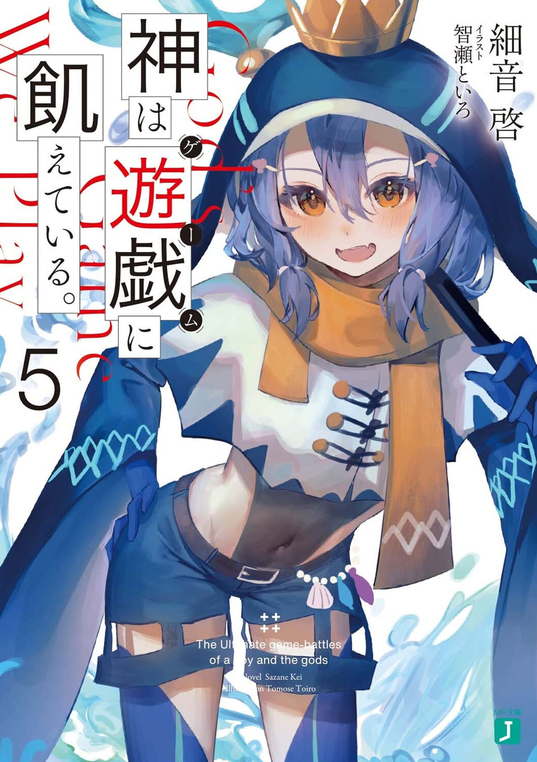En el sitio web oficial del sello editorial MF Bunko J, la novela ligera Kami wa Game ni Ueteiru (Gods’ Games We Play) reveló la portada oficial de su volumen #5, y se confirmó que se lanzará a la venta en las tiendas de Japón el próximo 25 de agosto. Además, este volumen tendrá 328 páginas en total, y estará disponible bajo un precio de 748 yenes.
