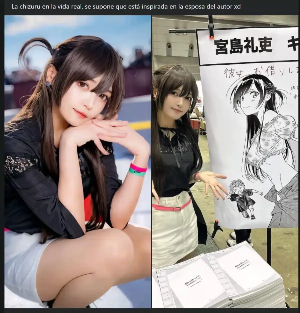 Tal como ya hemos aclarado con anterioridad, la chica con el cosplay de Chizuru Mizuhara que tanta notoriedad ha tenido en redes sociales es en realidad la cosplayer @TZK_continued, quien activamente en sus redes sociales comparte alucinantes cosplays de la protagonista de «Rent-a-Girlfriend» (Kanojo, Okarishimasu).
