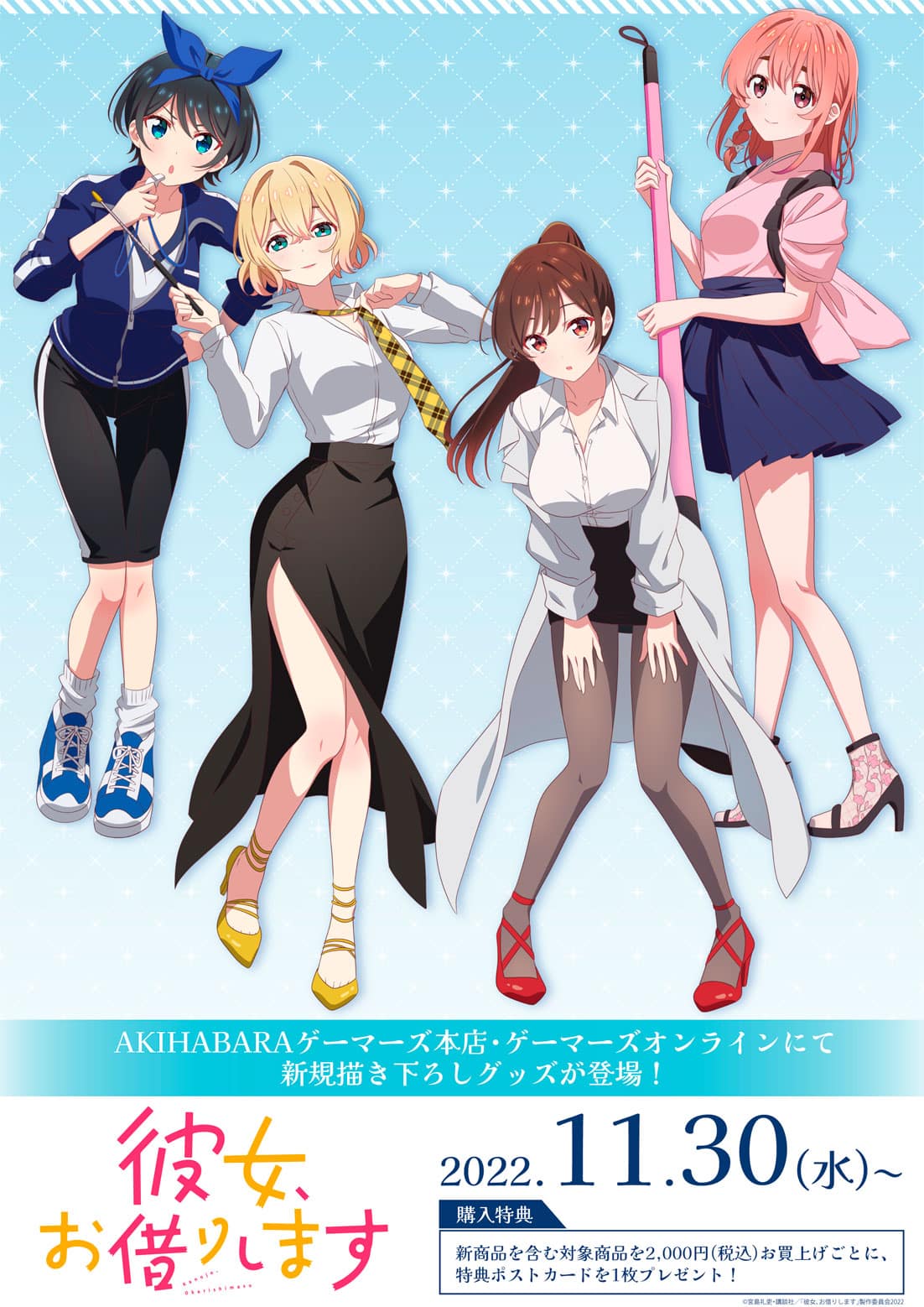 En el dรญa de hoy, el anime Kanojo, Okarishimasu anunciรณ una colaboraciรณn especial que consistirรก en un evento que se realizarรก en el centro ยซAKIHABARA Gamersยป y en la tienda online de la tienda Gamers. Para esta ocasiรณn, las waifus de la franquicia inspirarรกn varios productos especiales que contarรกn con la particularidad que Chizuru, Mami, Ruka y Sumi estarรกn vestidas de una manera ยซdiferenteยป a lo que estamos acostumbrados.