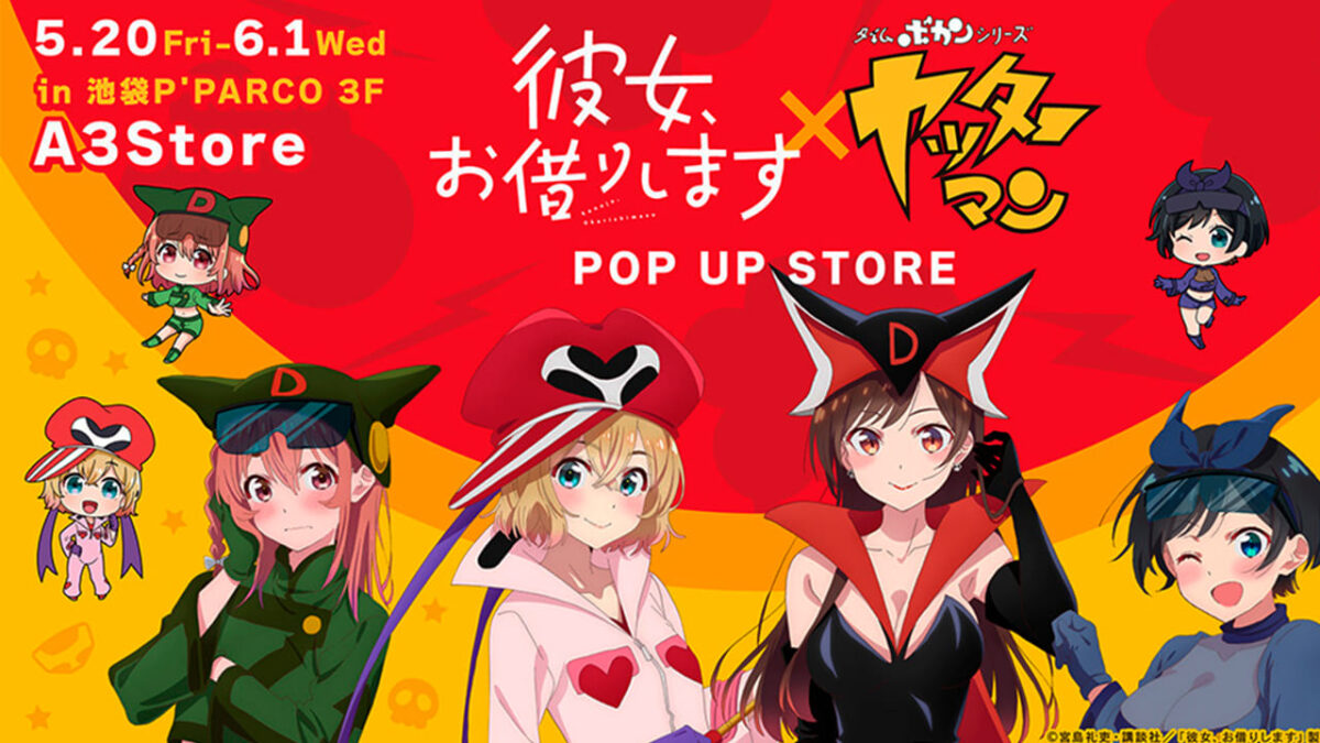 La cadena A3 dio a conocer una nueva mercancía inspirada en una colaboración entre el anime de Kanojo, Okarishimasu (Rent–a–Girlfriend) y la franquicia de Time Bokan Series: Yatterman, en esta se pueden apreciar a Chizuru, Mami, Ruka y Sumi vistiendo encantadores trajes de esta franquicia para una línea de productos.