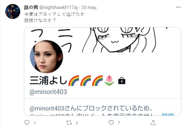 Luego de que otros varios usuarios comenzaran a criticarla decidió volver su cuenta privada no sin antes bloquear a bastantes usuarios. Cosa que no agrado a muchos, entre los que destaca @nighthawkf117aj quien comento: