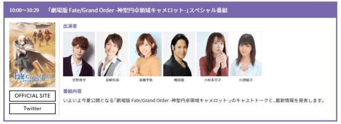 Se ha revelado que el próximo fin de semana, la cadena AbemaTV transmitirá un especial de anime titulado Aniplex 48-Hour TV. Durante la transmisión se revela nueva información sobre los animes producidos por Aniplex, en los que se incluye: Fate/Grand Order: Camelot, Sword Art Online: War of Underworld, Kimetsu no Yaiba, Hataraku Saibou y más animes.