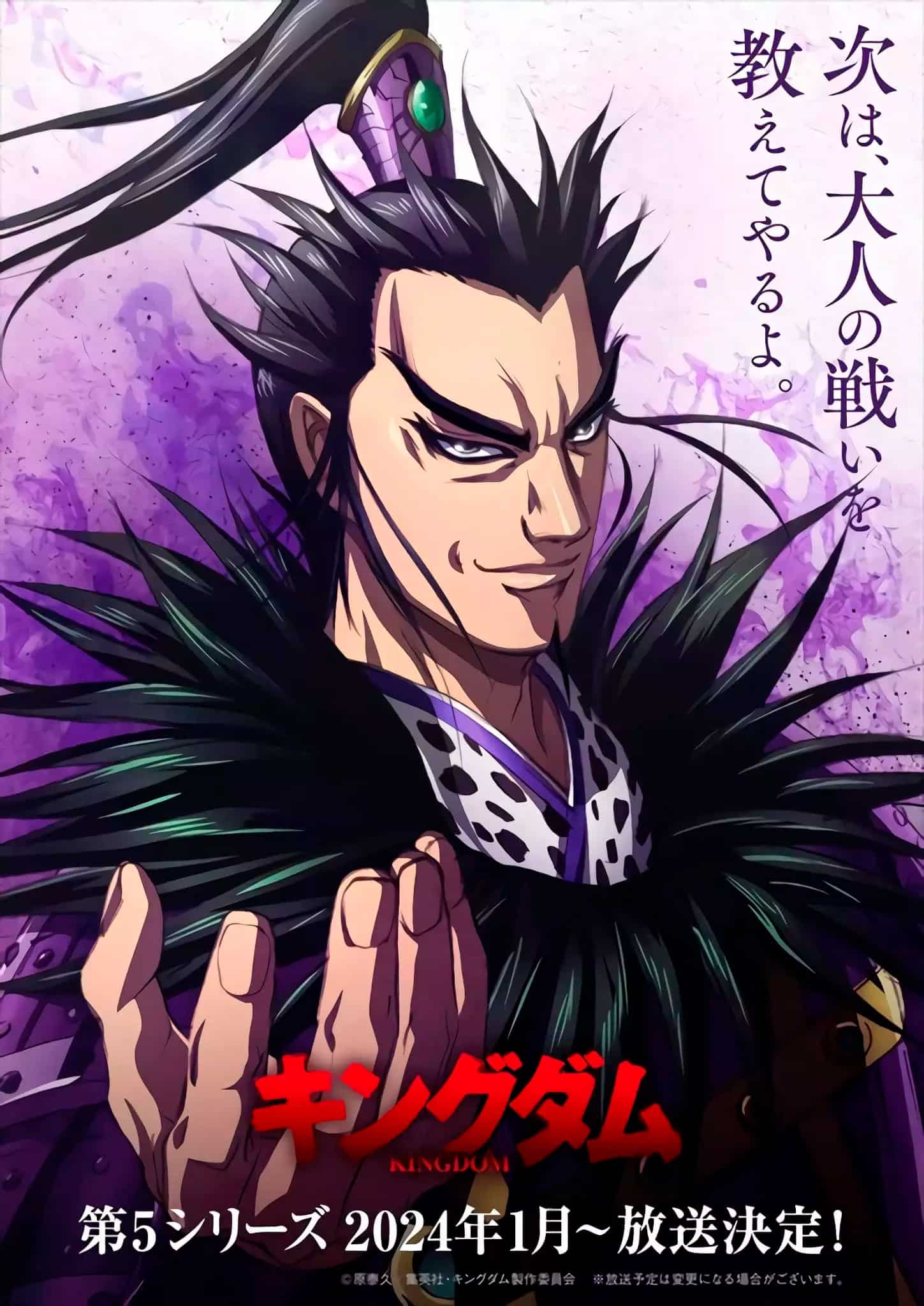 Al finalizar la emisión del último episodio de la cuarta temporada del anime Kingdom, el comité de producción de la serie anunció la producción de una quinta temporada, la cual está programada para estrenarse en el transcurso del mes de enero del año 2024. Adicionalmente, se ha publicado una imagen visual para la nueva temporada de la serie y se espera que con el pasar de los meses se den a conocer nuevos detalles sobre su producción.