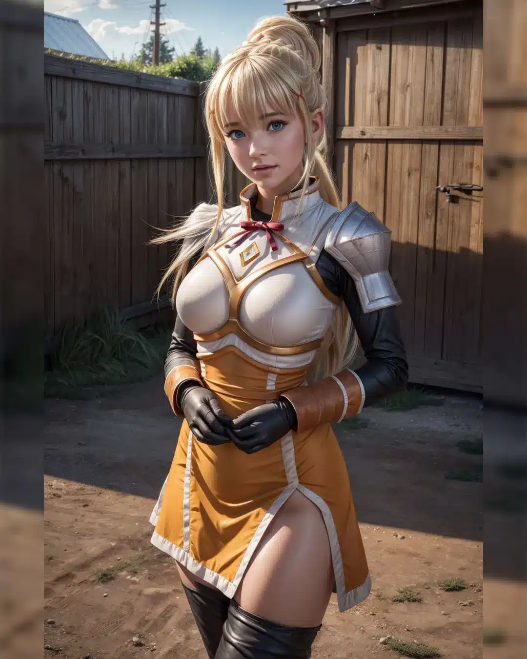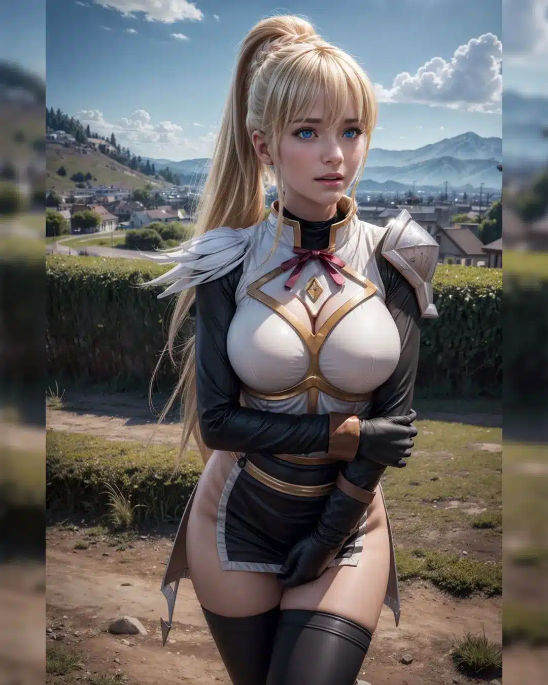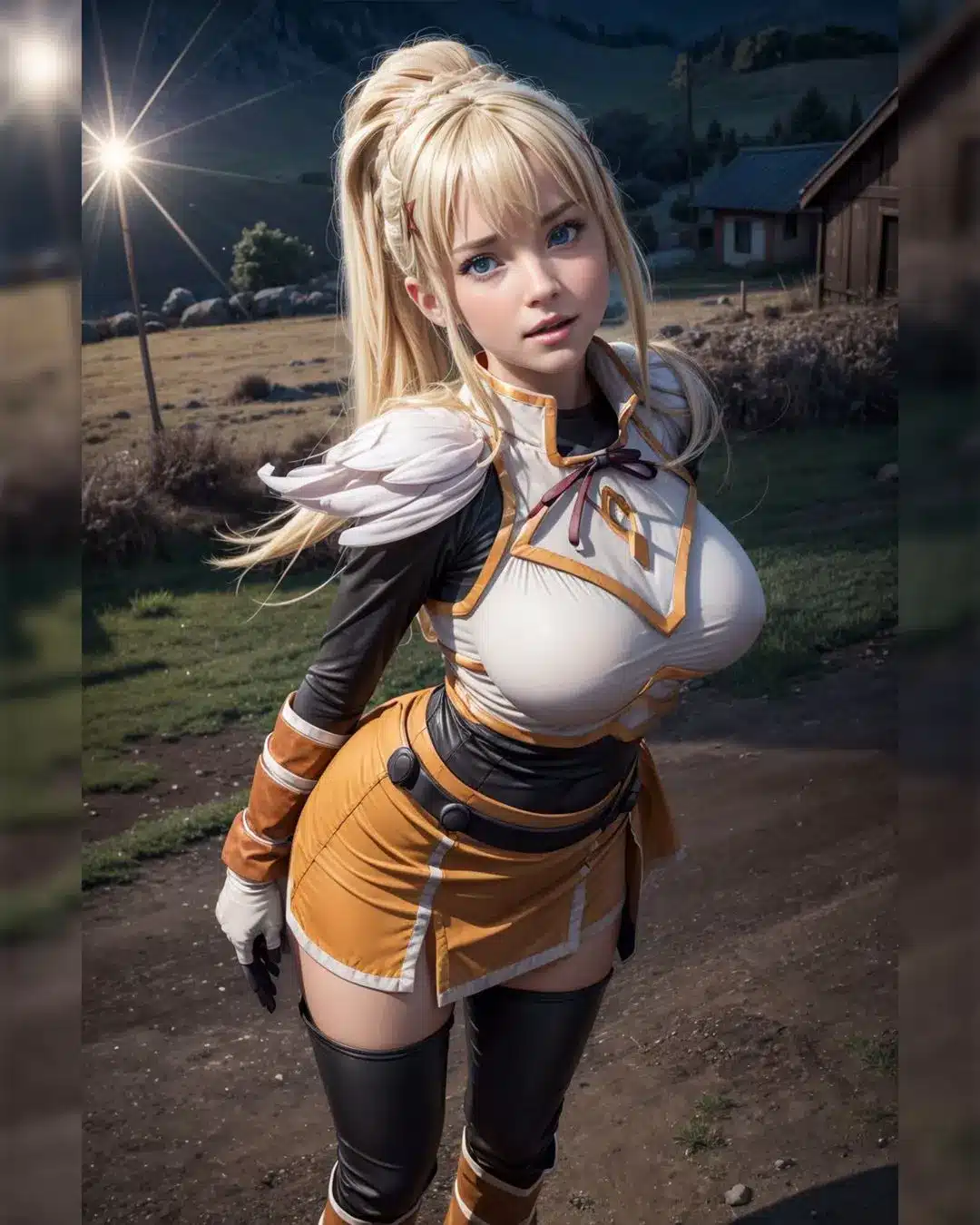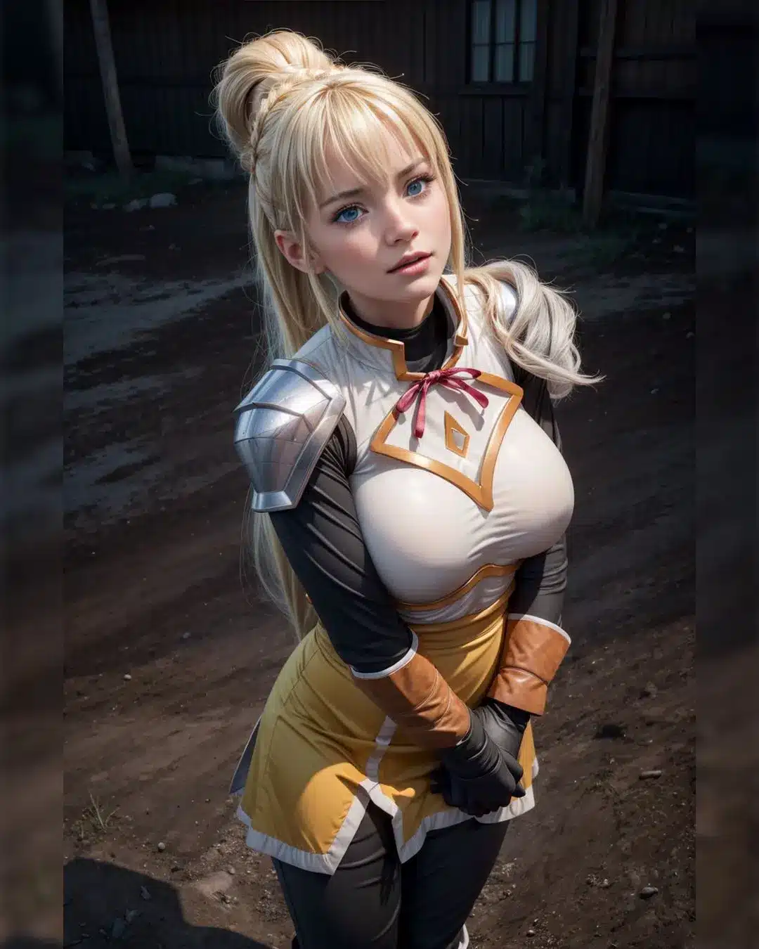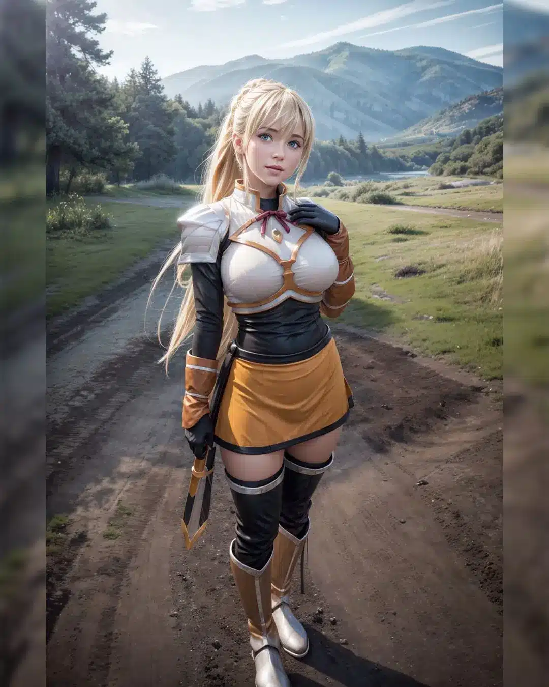 En esta nueva temporada de anime, Konosuba! (KonoSuba: God’s blessing on this wonderful world!) volvió a lo grande con el estreno de su tan esperada tercera temporada que a pesar de las filtraciones que ha sufrido de sus últimos capítulos, los fanáticos aun así disfrutan a lo grande de todos los momentos divertidos que este anime nos llegara a brindar. Por eso en esta ocasión les venimos a mostrar un fabuloso arte generado por IA en el cual se nos muestra a la encantadora masoquista Darkness en una versión realista que dejara fascinado a los fanáticos de la serie.