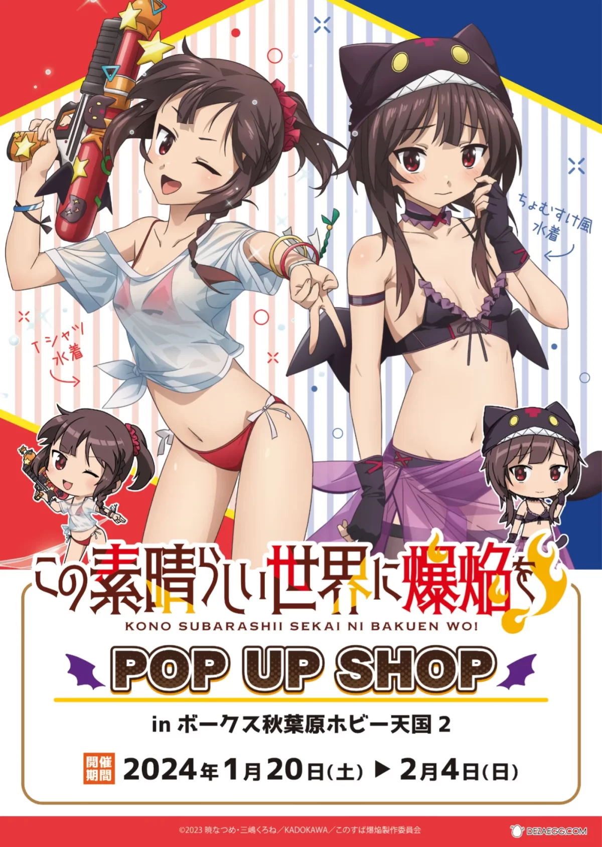 Además, se especificó que este evento consistirá en la apertura de una tienda «POP UP SHOP» en donde se exhibirán una línea de productos que estarán inspirados en las cautivadoras ilustraciones de Megumin creadas para esta interesante colaboración. Es importante señalar que dicho evento está progrmado para comenzar en Japón el 20 de enero y llegará a su final el próximo 4 de febrero de este año.
