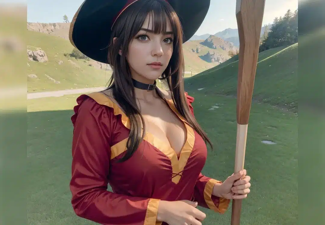 De entre todos los personajes de Konosuba!, Megumin la excéntrica demonio carmesí de cabello negro, se ha ganado un lugar especial en los corazones de los otakus, pues gracias a ella hemos sido testigos de los momentos más hilarantes que tiene esta obra para ofrecernos, así como de las explosiones más curiosas en el anime. Esta vez el usuario en Instagram llamado «mysmartarts» con la ayuda de la inteligencia artificial nos regala una versión realista de esta chica que resalta todo su atractivo y su belleza femenina en una imagen que nos deja muy sorprendidos.