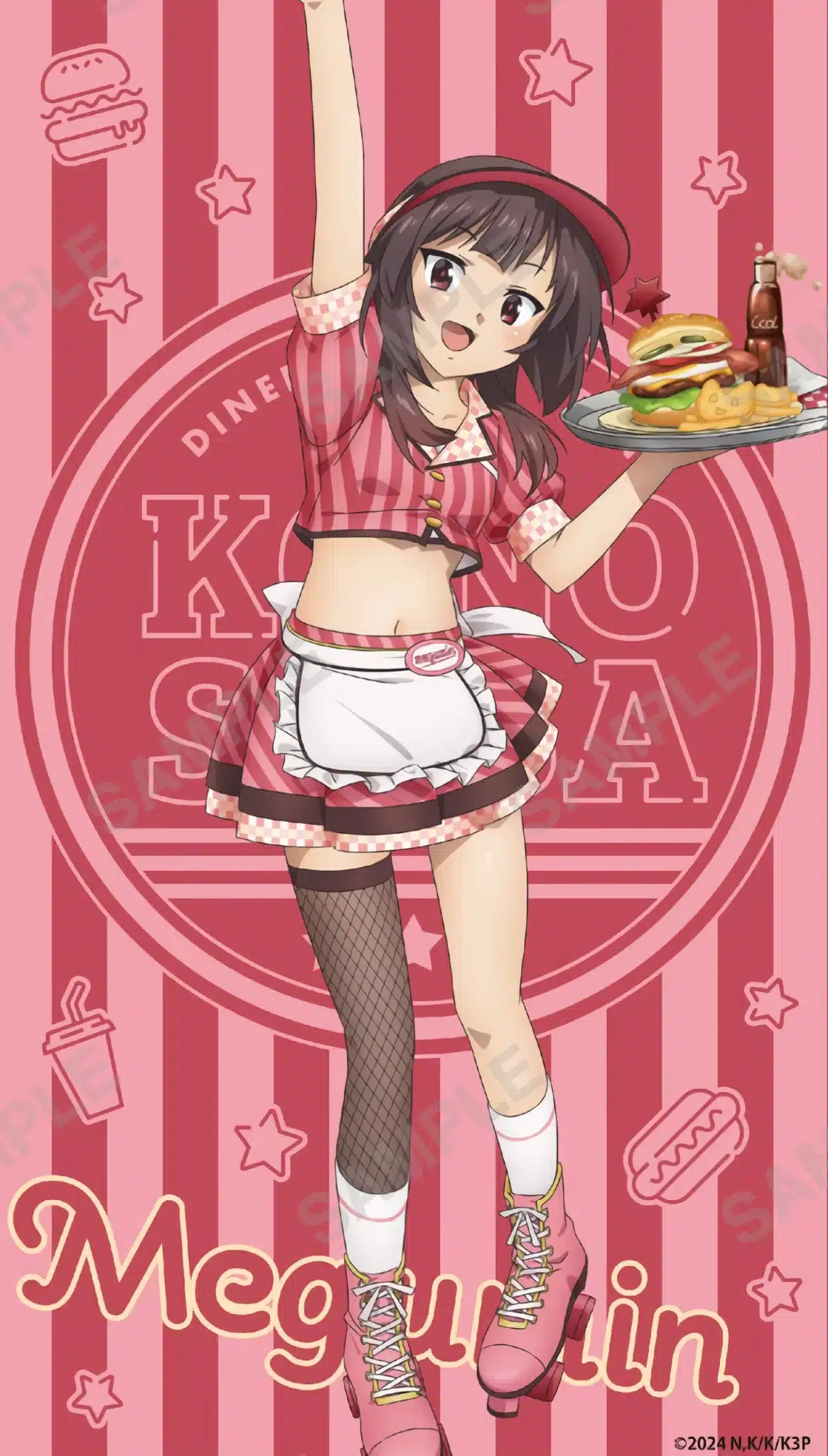 Para esta colaboración especial entre el anime Konosuba! y la cadena de tiendas de Japón «Gamers» se nos presentará a las waifus de la historia con un atractivo atuendo de sirvienta de un café/restaurante, en donde mostrarán sus habilidades a la hora de atender a la clientela. Algunos de los productos que se exhibirán en este evento especial serán los siguientes: Toallas de tamaño Grande, Juegos de Vasos, Correas para smartphones, Figuras de Acrílico, Insignias de Lata, Clear File A3, entre otras cosas.