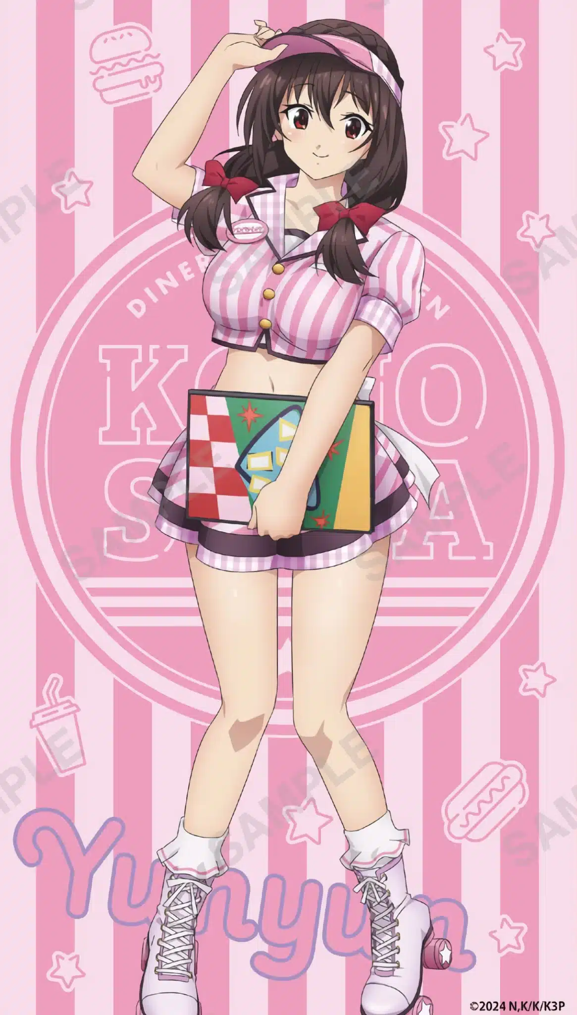 Esta colaboración especial consistirá en la apertura de una tienda «POP UP SHOP» en donde se exhibirán diversos productos inspirados en las waifus de la franquicia Konosuba!: La diosa Aqua, la Archimaga amante de las explosiones Megumin, La atractiva y masoquista paladín Darkness y la Archimaga hija del líder del Clan de los Demonios Carmesí, Yunyun.