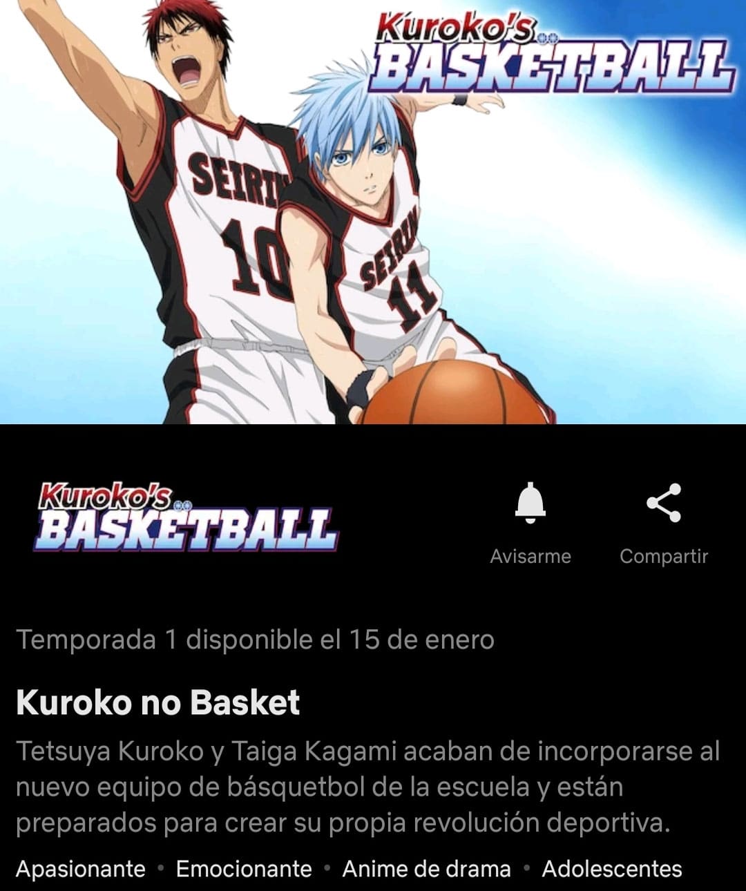 Sin dar ningún anuncio o aviso previo, la Plataforma de Netflix para Latinoamerica añadirá a su plataforma al anime deportivo «Kuroko no Basket» el cual se estrenara el 15 de enero de 2021