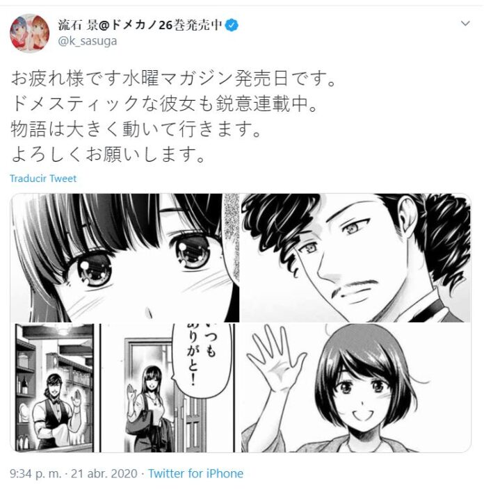 Sasuga Kei, la autora del manga Domestic na Kanojo, comentó en Twitter que apesar de haber pedido a los fans que no hicieran spoilers, varios fans en el extranjero continúan publicando en los comentarios spoilers con scans de páginas ilegales.
