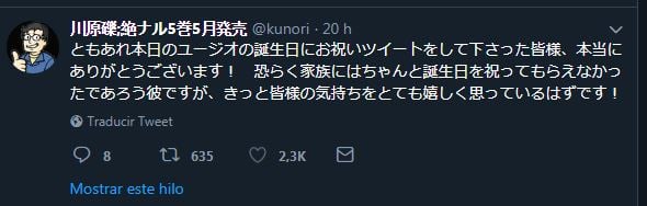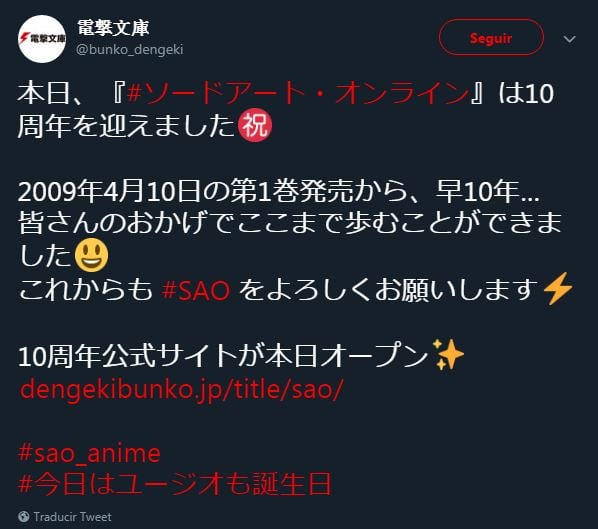 Pero en un breve Twitter descubrimos que hoy es el cumpleaños del personaje Eugeo y Reki Kawahara, su padre, agradeció a todos los que se acordaron y lo felicitaron en su cumpleaños al personaje.