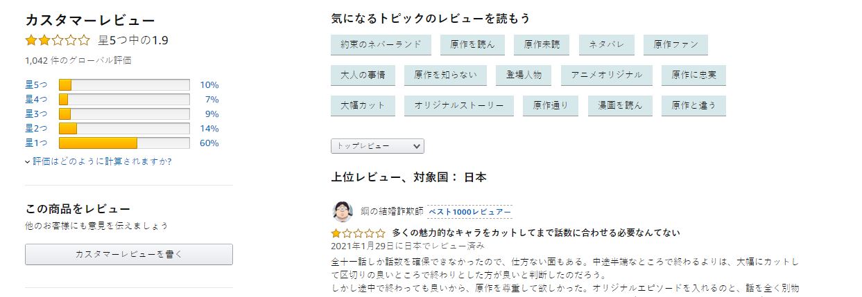 De hecho la segunda temporada del anime tiene una puntuación de tan solo 5.73 de 10 en MyAnimeList, mientras que la puntuación de la serie en Amazon Prime Video fue de tan sólo 1.9 de 5.