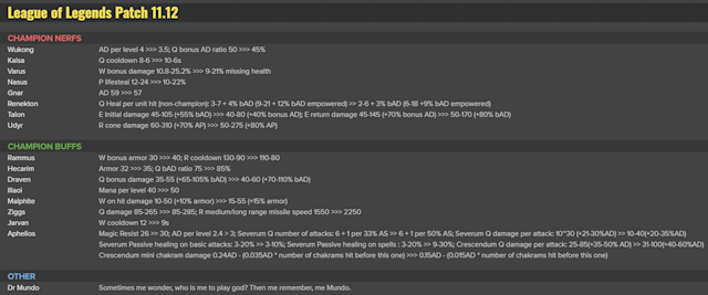 Mediante el Twitter de Mark Yetter, un trabajador de League of Legends, se anunciรณ los cambios de balances para el parche 11.12 del juego de Riot Games. Estos entrarรกn en vigencia el dรญa 9 de junio y, como siempre, se tendrรก la notas del parche oficiales el 8 de junio.